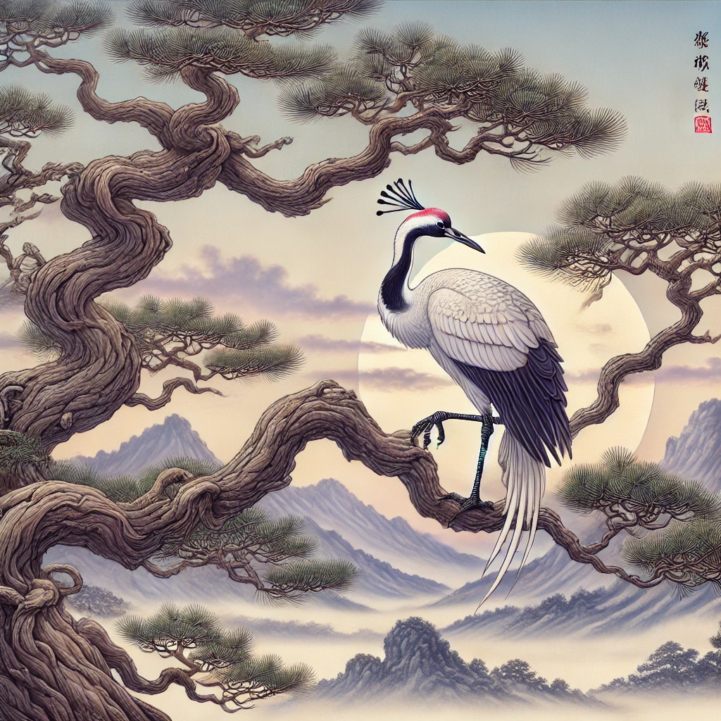 [PNG] 소나무끝에 앉은 고고한 학